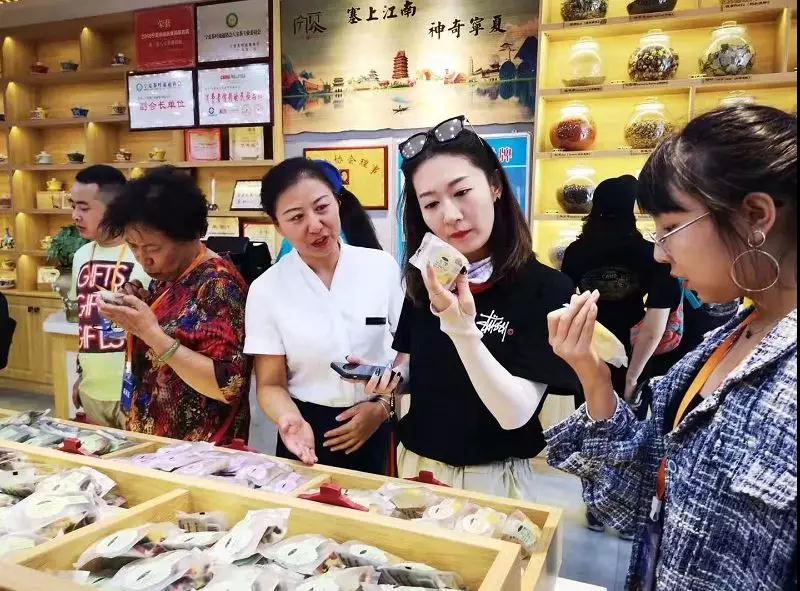 刘三朵八宝茶体验馆,游客购买宁夏旅游商品