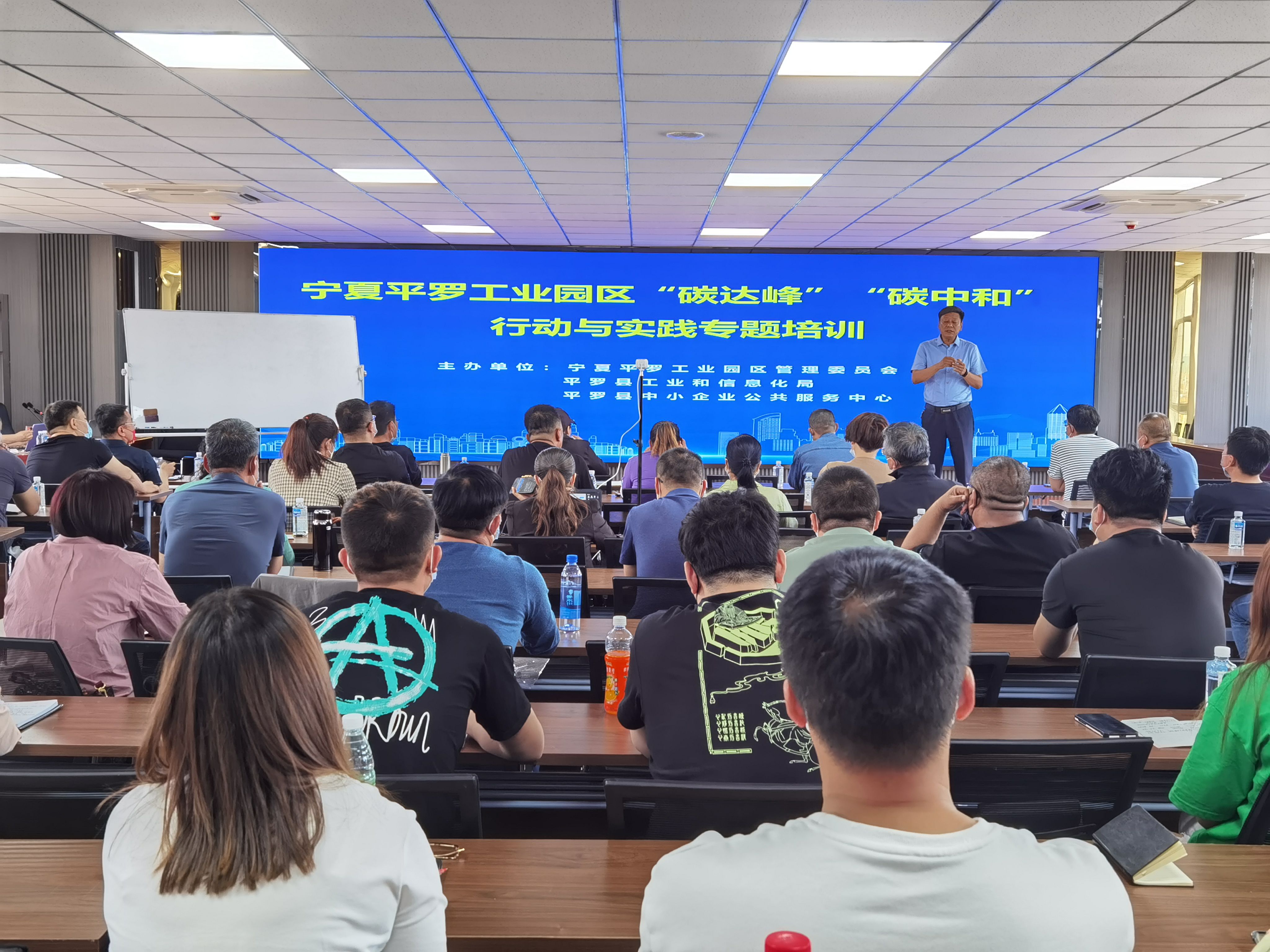 5月20日,宁夏平罗工业园区管委会、县工业和信息化局、县中小企业公共服务中心联合举办“宁夏平罗工业园区碳达峰、碳中和行动与实践”专题培训班。