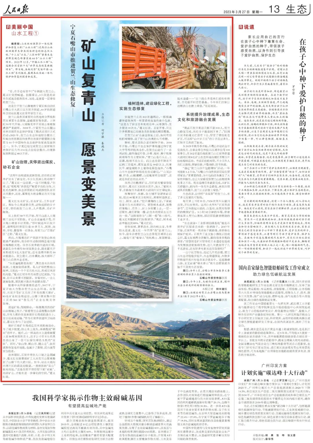 人民日报丨宁夏石嘴山市推进贺兰山生态修复——矿山复青山 愿景变美景