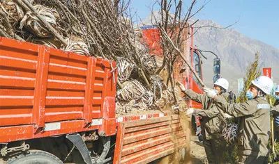 今年3月,石嘴山市参加春季义务植树的单位员工在搬运树苗。(图片来源:石嘴山市委宣传部)