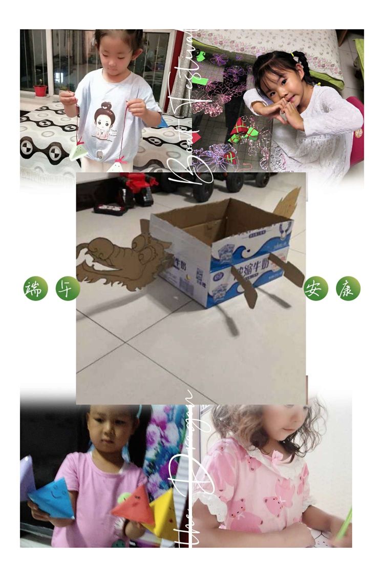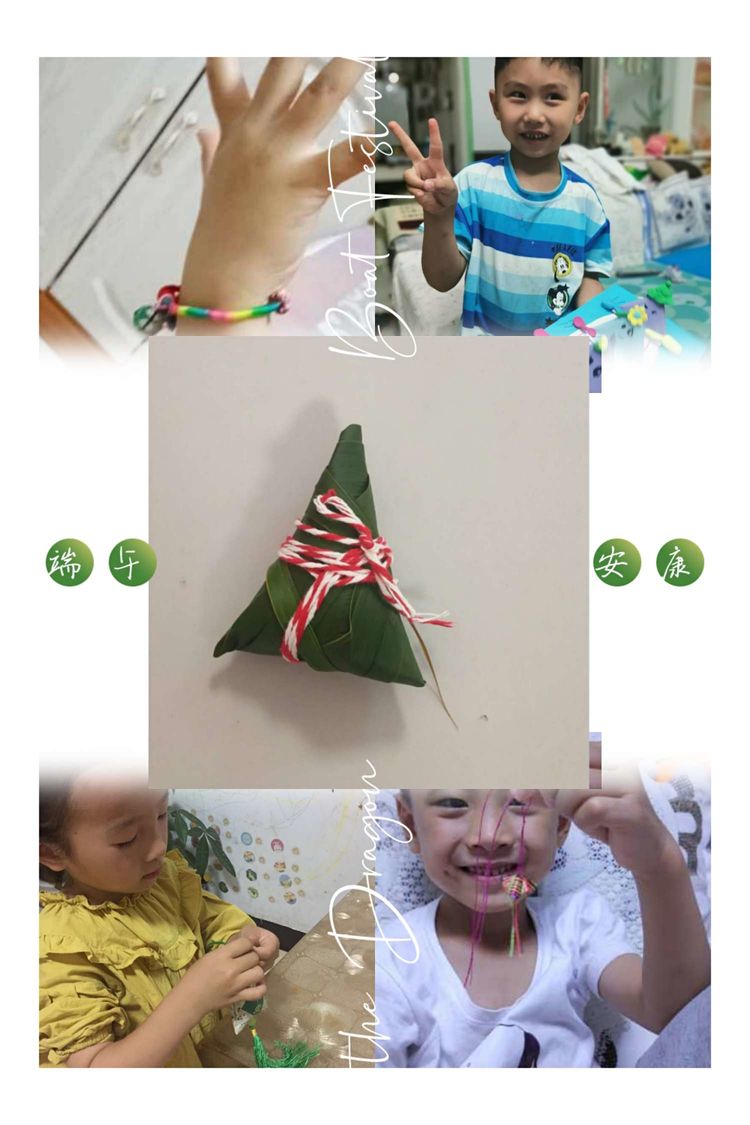 端午节,是我国的传统节日,为每年农历五月初五。赛龙舟、吃粽子、戴香囊、采艾蒿等都是中华民族历史长河中传统文化的积淀。为了加深幼儿对端午节的了解,感受端午节有趣的氛围,6月23日下午平罗一幼分园中班组开展了“粽叶飘香 快乐端午”系列主题活动。 由于新冠肺炎疫情的影响,我们本次的端午节主题活动分为线上活动和线下活动。教师精心选择适合本阶段幼儿年龄特点的活动内容,幼儿通过参与活动,了解了端午节的由来及习俗,感受中国特有的节日气氛,萌发热爱祖国的情感。 线上活动 老师提前准备活动内容,利用家长微信群布置任务,请家长积极配合完成。家长在与幼儿的互动中不仅培养了幼儿的动手能力,同时增进了亲子间的情感。 编彩绳 做龙舟 画粽子 线下活动 老师们利用多媒体课件,为幼儿生动形象的讲述了端午节的由来及习俗,同时准备了丰富的故事、儿歌、手工等活动内容,帮助幼儿进一步了解端午节。