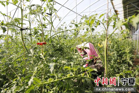 在西灵村的一座蔬菜温棚内,西灵村村民张小霞正在忙碌着修剪枝叶、采摘西红柿。张小霞说,她已在此务工3年,每年收入能达到2万多元,此外她还在家种地、养牛,一年下来,收入也颇为可观。