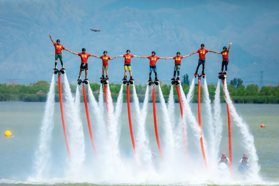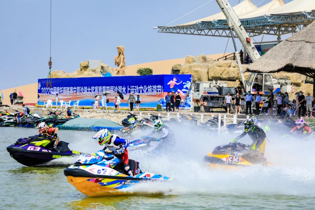 为扩大体育和旅游市场供给、更好满足广大游客体育和旅游需求。沙湖在水上文化运动节期间首次引进了国家级金牌赛事:2022年中国摩托艇联赛宁夏沙湖大奖赛,拉开了水上运动新篇章同时沙湖,在水上运动基地揭牌仪式后将逐步开展桨板、皮划艇、动力冲浪板、摩托艇、帆船、水上飞人、尾波冲浪等高品质运动项目,创新夏令营、团建、高端定制等产品,引进国内外流行水上运动项目进入景区,打响沙湖水上运动文化品牌。