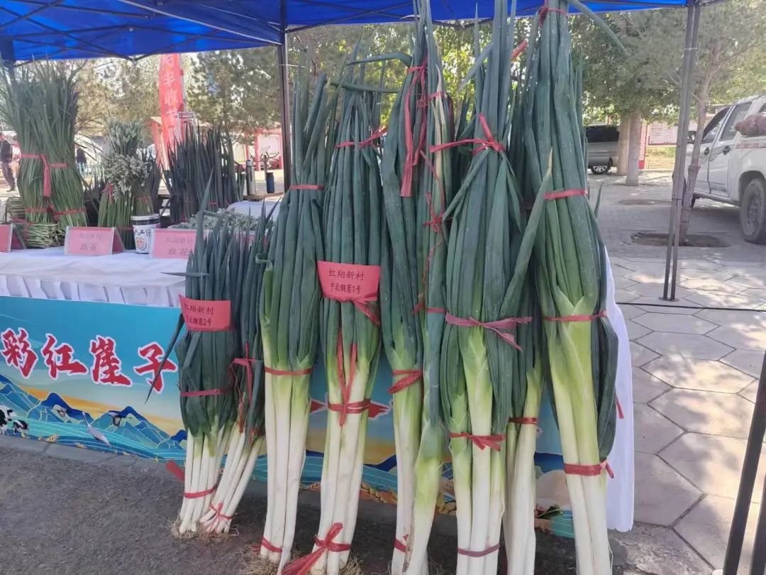 塞上金秋,天高云淡,瓜果飘香。上午九时,红崖子乡红瑞村村部广场上人头攒动,热闹异常,特色农产品展示区和特色美食展示区围满了前来参加乡村文化美食节的群众,一只头顶红花的山羊带着两只憨态可掬的小羊羔亮相特色农产品展区,为众多农产品“站台”,吸引大家围观拍照。观赏南瓜、丝瓜、葫芦、宽叶韭菜等当地农产品品相好、品质高,展示出近年来我县农业科技不断发展的成果,特别是一人多高的钢葱,让人大开眼界。
