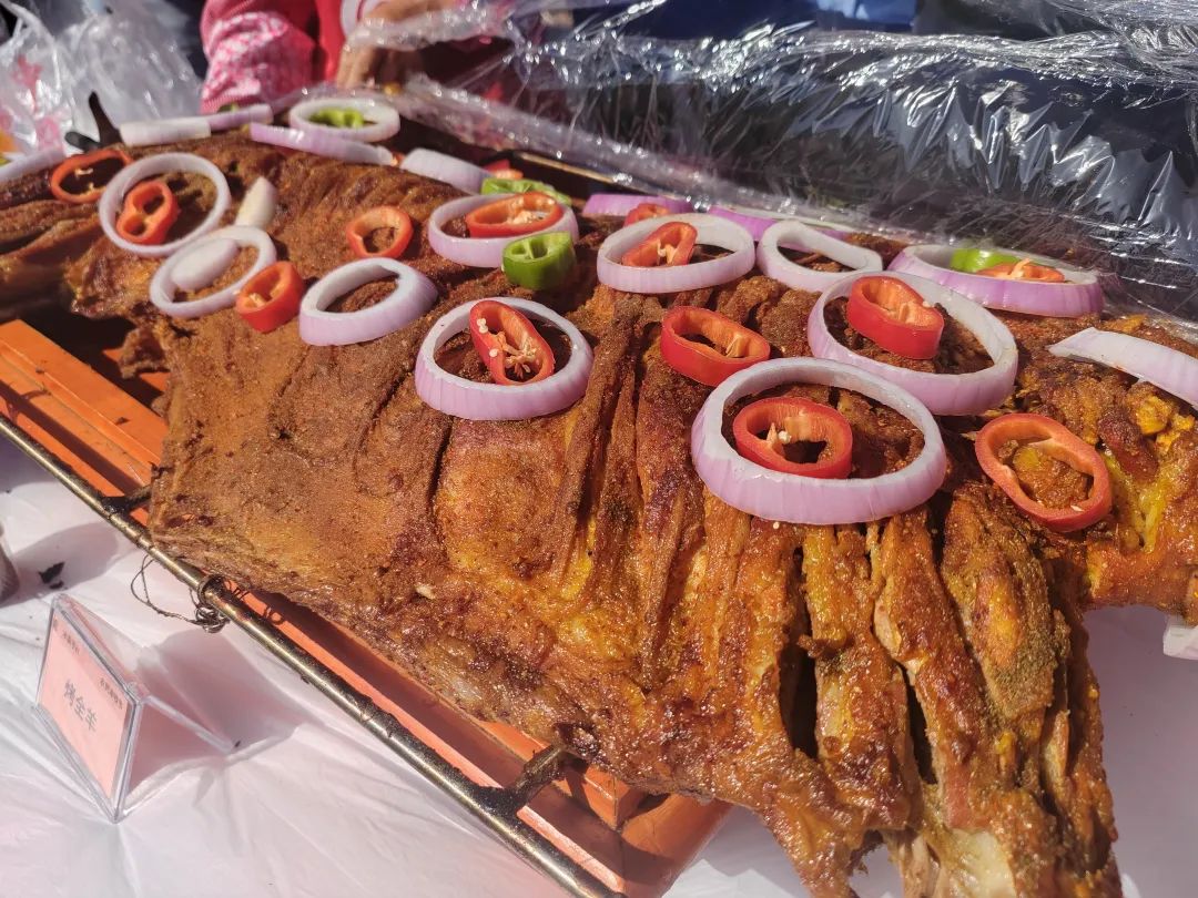 在特色美食展示区,各色美食更是吸引人的眼球、调动人的味蕾,红崖子乡7个村拿出了各自的绝活,水泉子村烤全羊、王家沟村羊杂碎、手抓羊肉以及红瑞村土炉烤鸡……色香味俱全,让人垂涎欲滴。