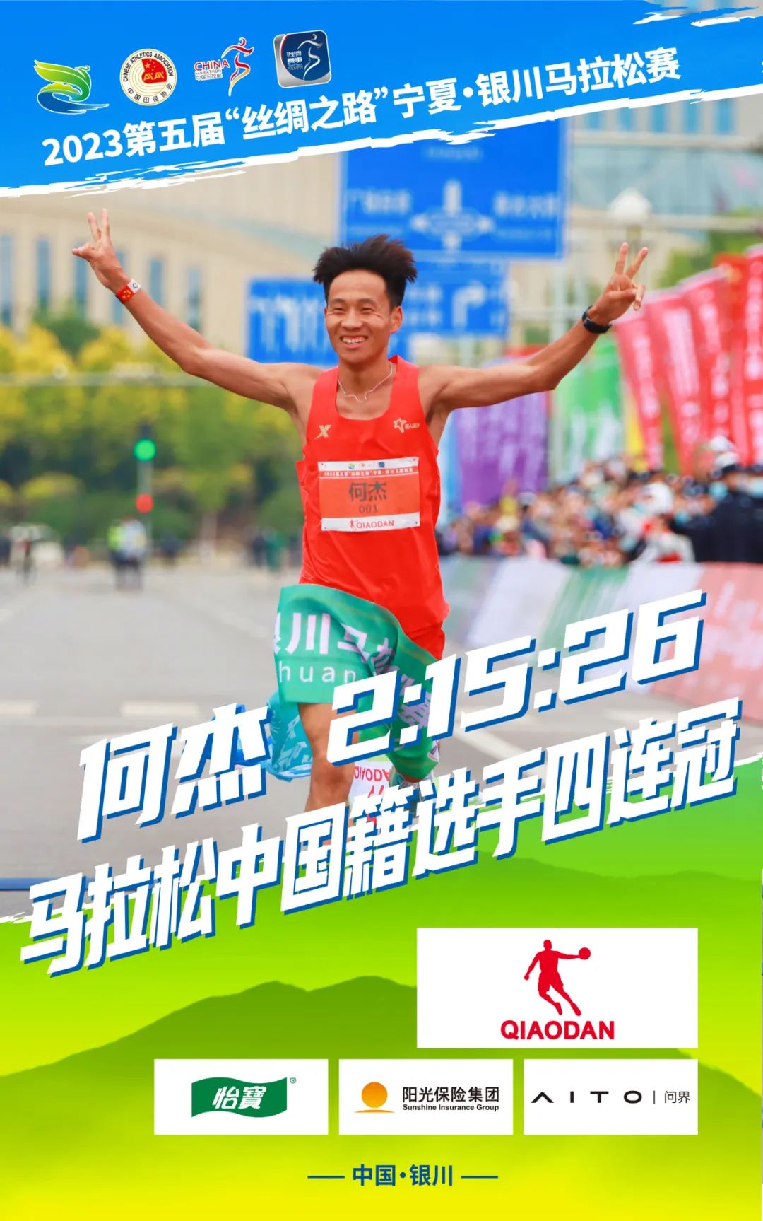 这是何杰继2023深圳马拉松、2023无锡马拉松、2023武汉马拉松后的又一次夺冠!再一次成为了宁夏人的骄傲!