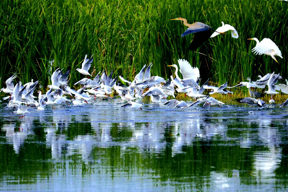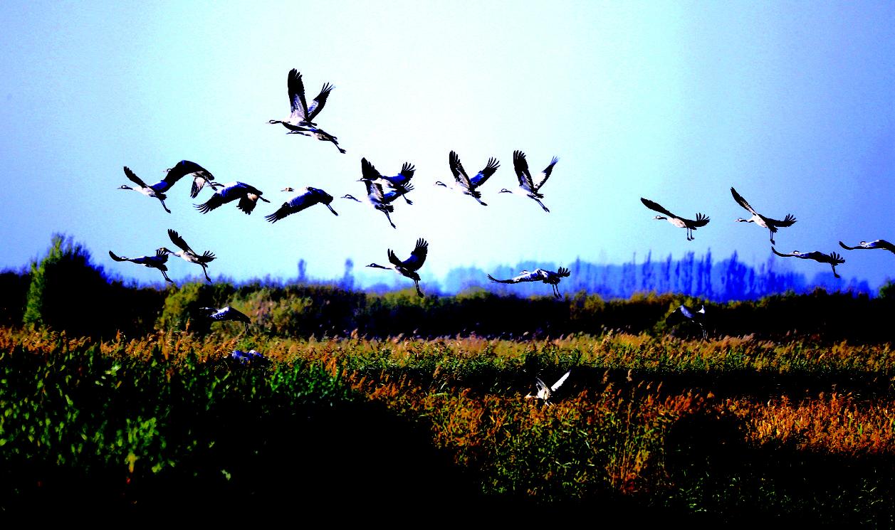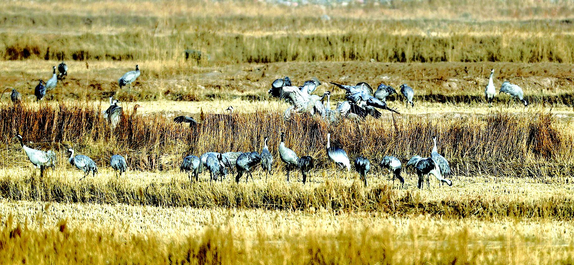 12月20日,在平罗县红崖子黄河公路大桥两侧岸边,一群白枕鹤正在栖息。这是宁夏迄今为止首次拍摄到白枕鹤。白枕鹤是国家一级保护动物,在我国的越冬种群数量呈下降趋势,从1988年的3124只降为目前的不到500只。在石嘴山市拍摄到这样珍稀的鸟类,反映了近年来石嘴山市生态环境改善成果良好。