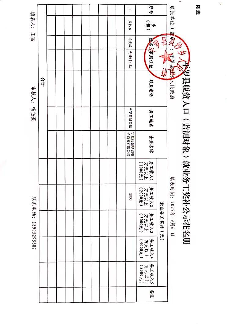 灵沙乡2025年平罗县脱贫人口(监测对象) 第二批就业务工奖补人员公示