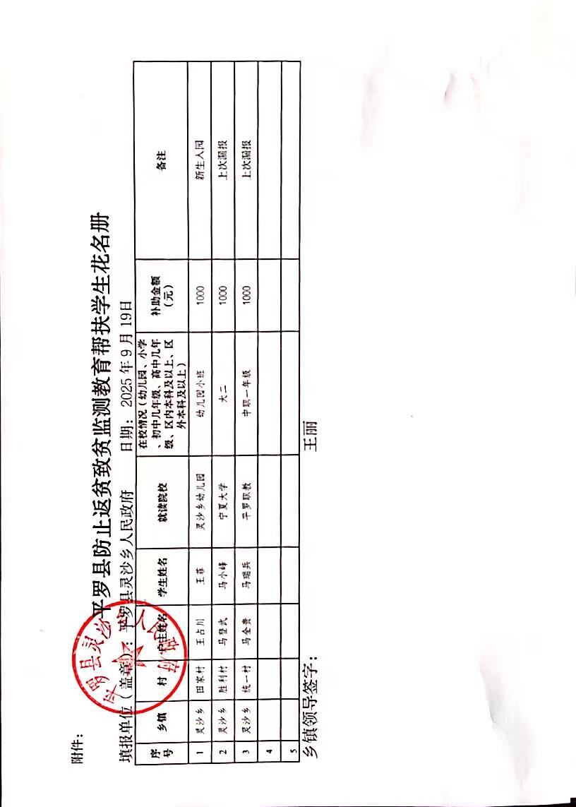 灵沙乡2025年第二批防止返贫致贫监测 教育帮扶补助学生名单公示