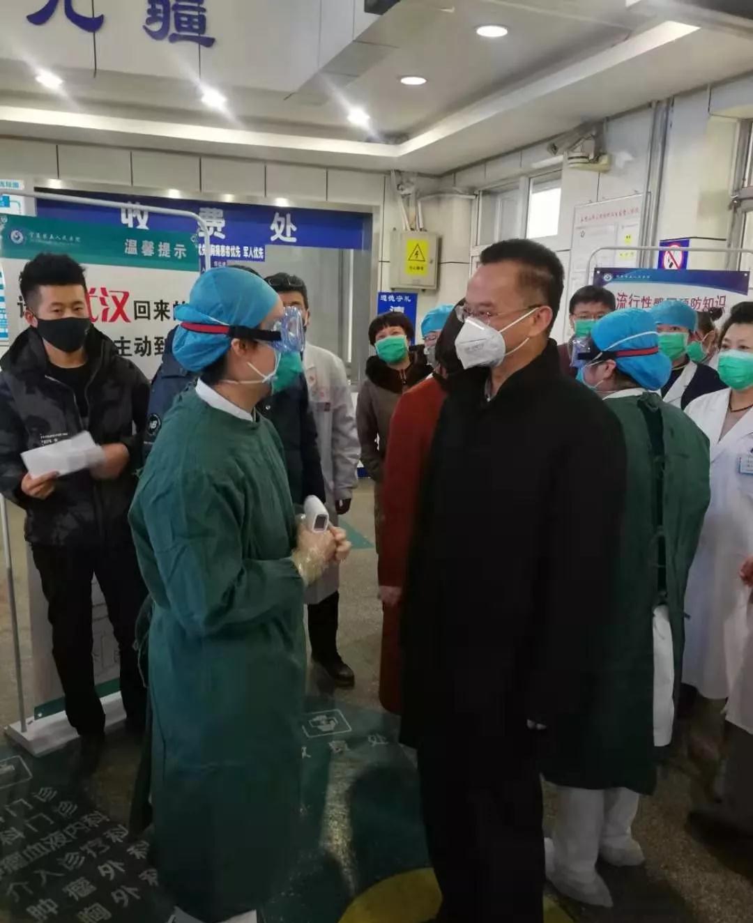 王文宇在宁夏第五人民医院慰问医护人员,了解疫情防控工作的进展情况。