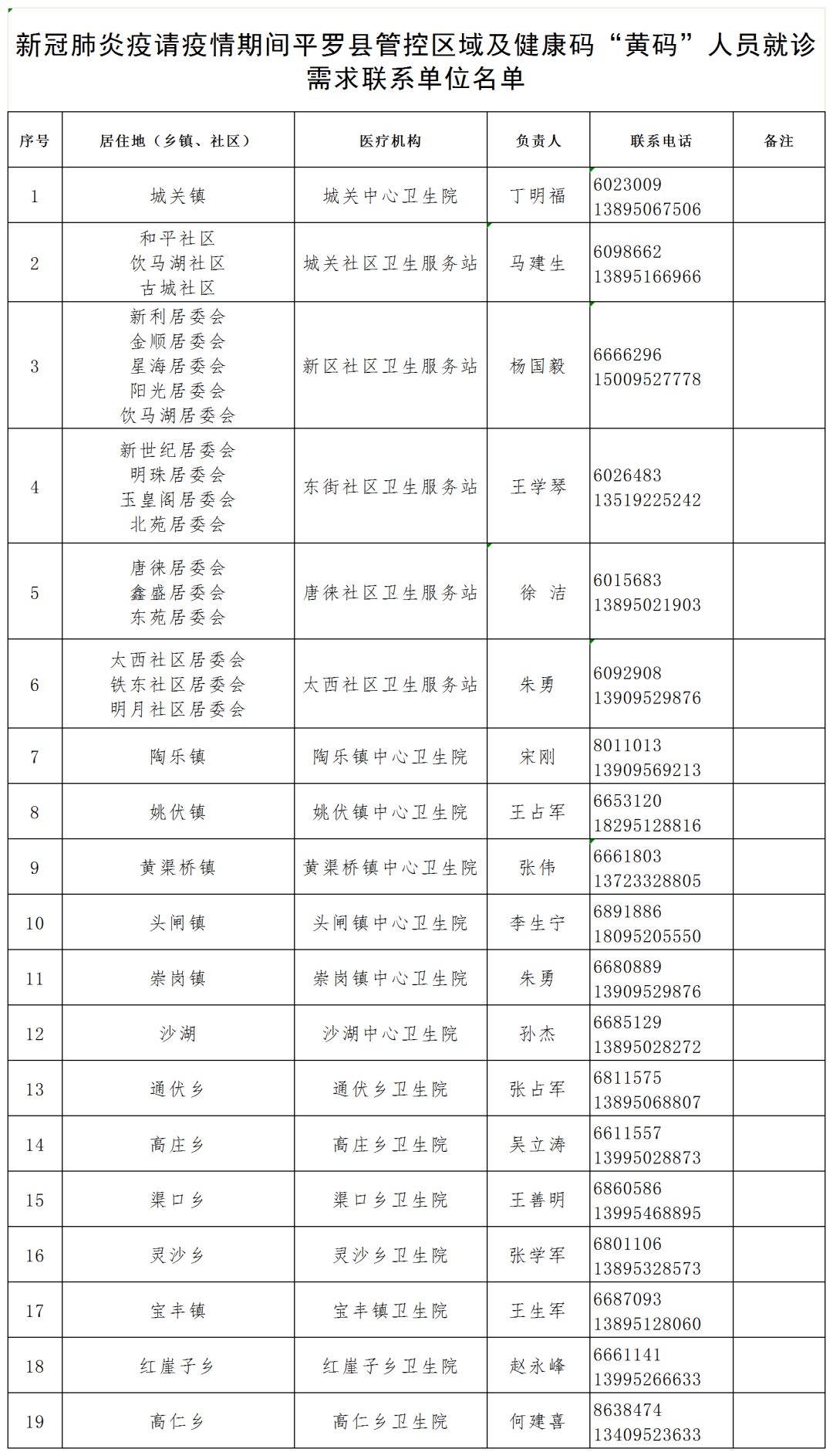 新冠肺炎疫情期间平罗县管控区域及健康码“黄码”就诊名单