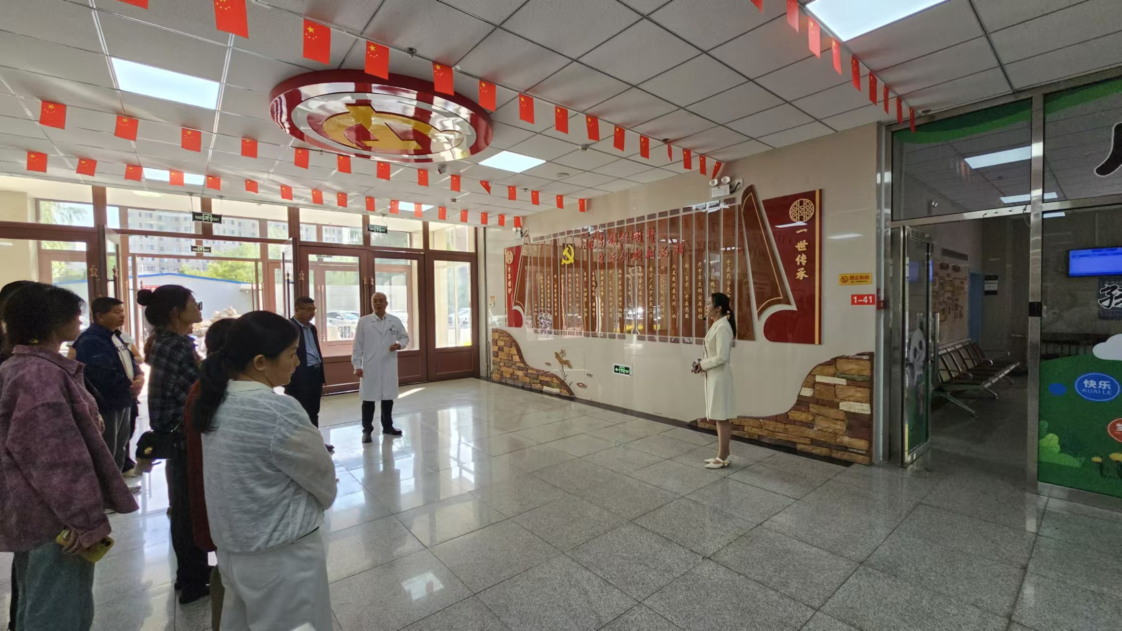 活动伊始,代表们在工作人员的专业引导与细致讲解下,开启沉浸式参观体验之旅。一行人先后走进中医经典科(中医药诊疗指导中心)、康复科、中医理疗中心、民医堂、血液透析室、老年病科、儿科等特色医疗服务区。在中医经典科,深入了解中医药针对疑难病症的独特诊疗逻辑与施治思路;在康复科与理疗中心,通过近距离观察针灸仪、艾灸仪等治疗设备,直观感受推拿、拔罐等中医技术在康复领域的显著成效;随后参观的党工共建文化长廊,更让大家清晰看到医院以党建为引领、推动党建与中医药业务深度融合,助力中医药事业高质量发展的特色路径与丰硕成果。
