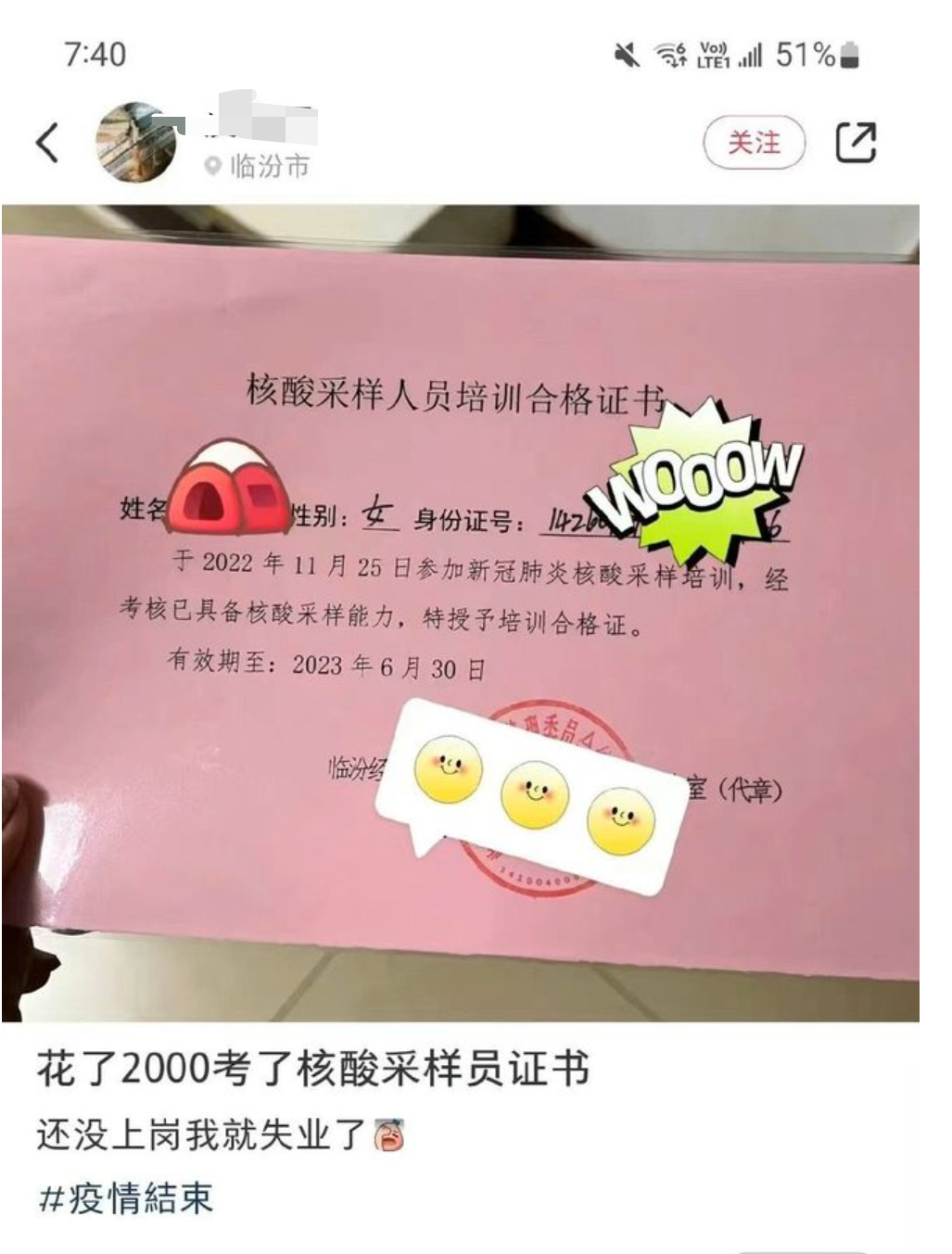 花2000元考核酸采样员证书,没上岗就失业?警方通报来了
