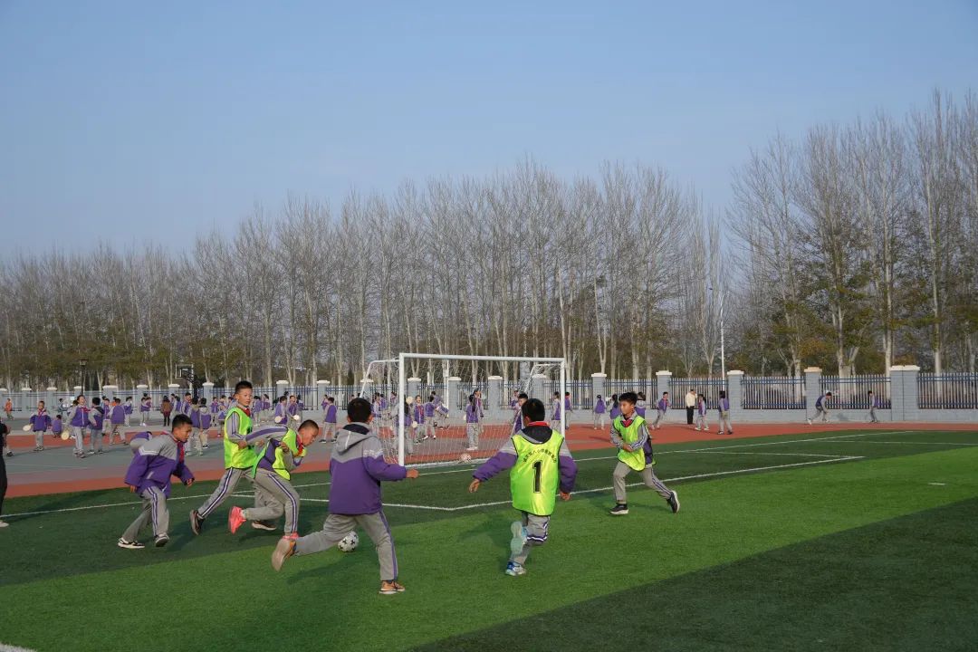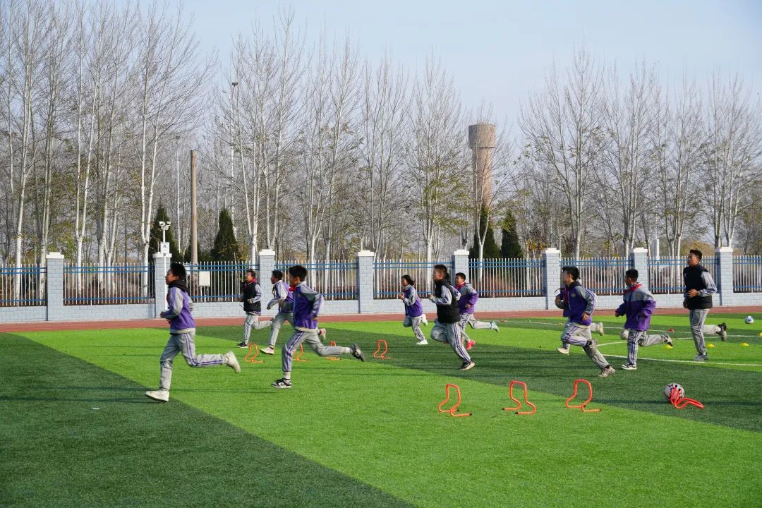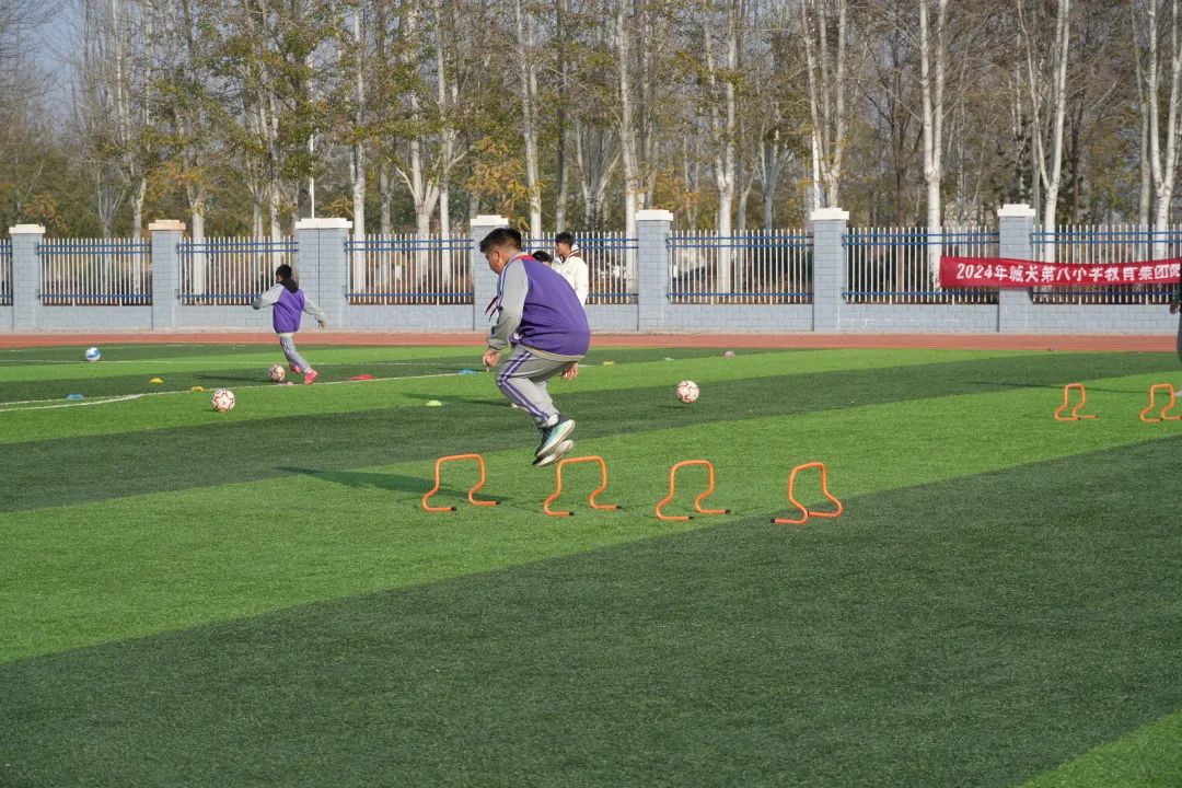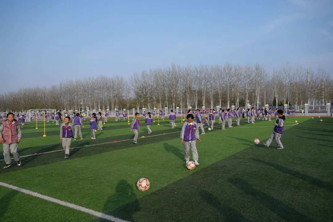 接球、带球、射门……在县城关第八小学南校区的绿茵场上,足球校队队员正在训练。在专业教练的带领下,大家认真练习、快乐奔跑。随后,体育大课间的铃声响起,各年级学生秩序井然地走进操场,跑步、绕柱,踩球、控球,大家尽情感受足球带来的乐趣,展现出朝气蓬勃的精神面貌。