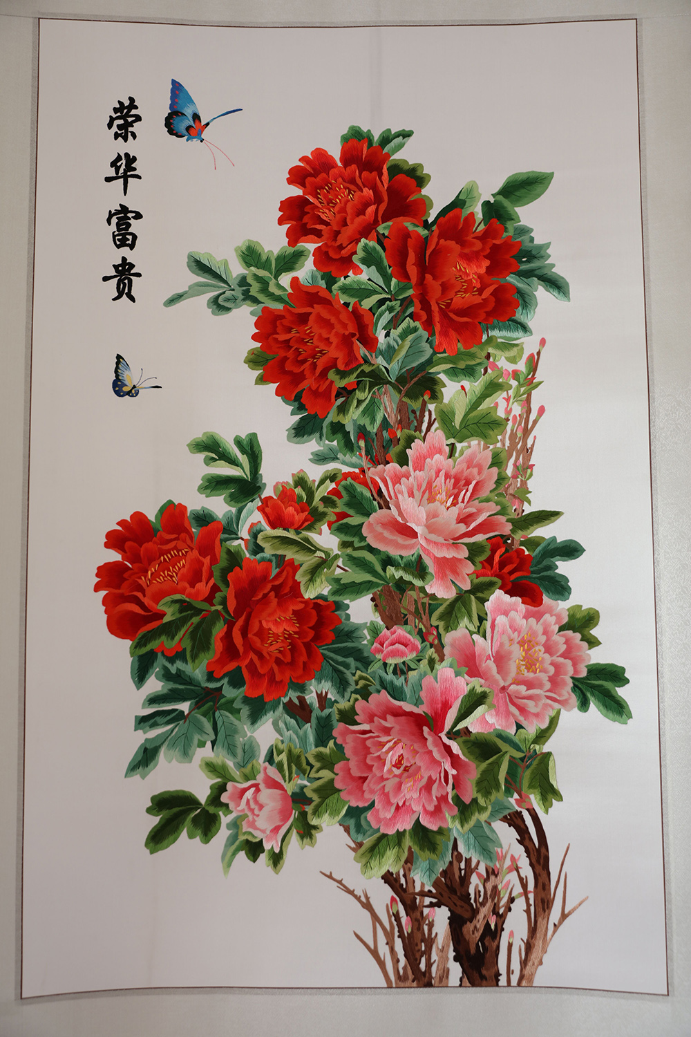 刺绣,自治区级非物质文化遗产项目,以其独特的技艺代代传承,文化作品精致细腻、独具匠心、构思独特、内涵丰富、具有独特的艺术魅力,充分体现了传承人精湛的技艺。主要以手工包、手工刺绣旗袍、手工刺绣围巾、条案、摆台、小挂件等,贴近百姓生活,满足不同消费者的需求。