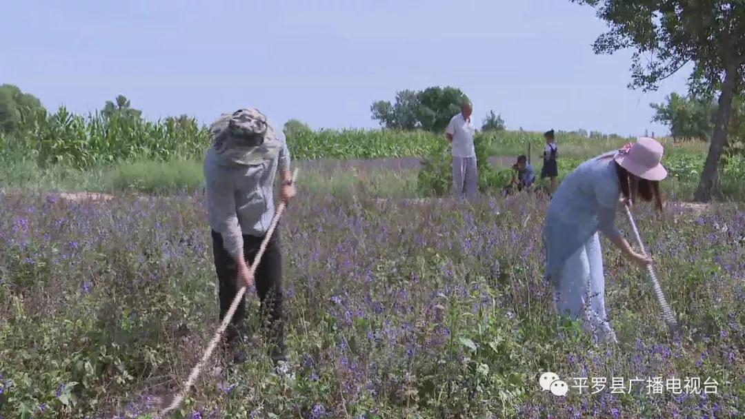 秋日,走进高庄乡高庄村丹参种植基地,丹参开满了紫色的小花,一股清新的气息扑面而来。村民正忙着田间除草。