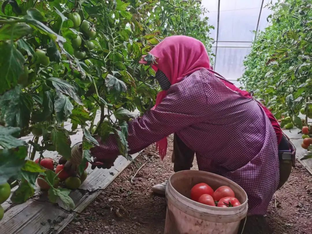 采摘、搬运、打包……抢“鲜”上市的水果西红柿,一出大棚就“赶往”下单客户家中。