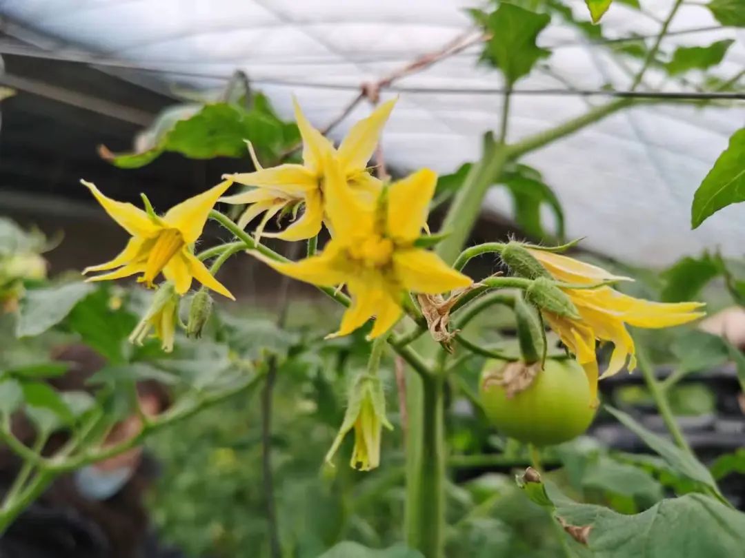 走进平罗县盈丰植保专业合作社日光温室大棚,一人高的西红柿藤蔓顺着牵引绳“奋力攀缘”,底层的果实红润饱满,顶层的花朵灿烂绽放,棚内生机盎然。