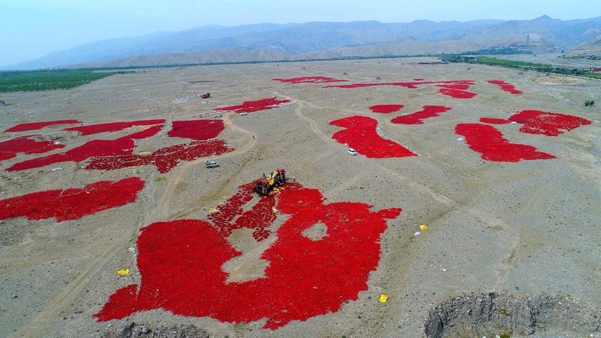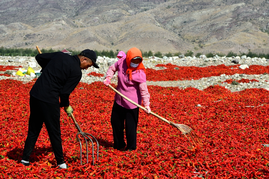 宁夏平罗:辣椒丰收“晒秋”忙