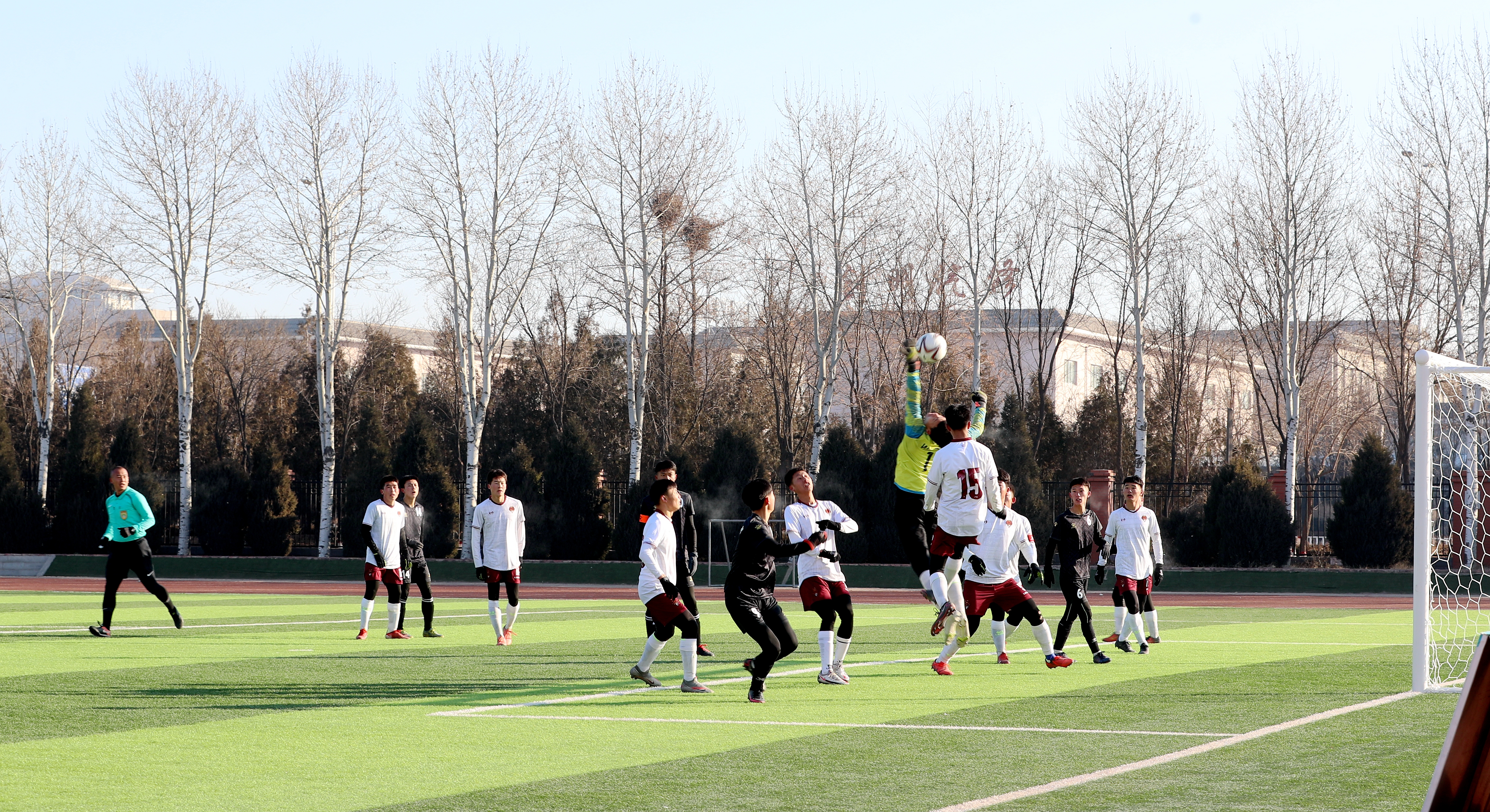 强攻严守、带球过人、长传突破、飞身铲球……12月27日,随着宁夏石嘴山市第三中学和灵武市第一中学选手们展开激烈角逐,2021年全区青少年男子足球冠军杯(甲组)比赛在平罗中学正式拉开序幕。