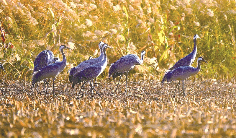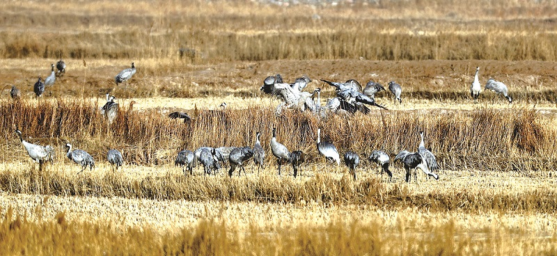 飞鸟在干燥的露地集结。石嘴山市新闻传媒中心通讯员 陈小组 摄