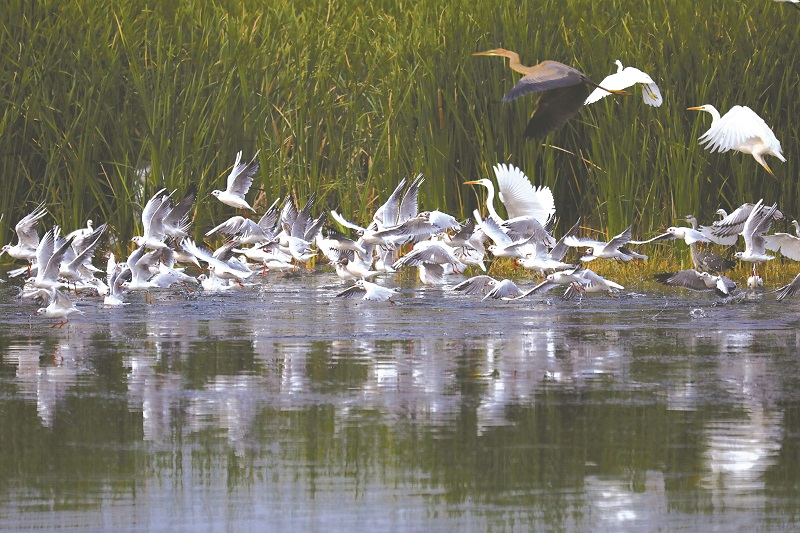 经过治理的黄河湿地,已成为万鸟翔集的“天堂”。石嘴山市新闻传媒中心通讯员 陈小组 摄