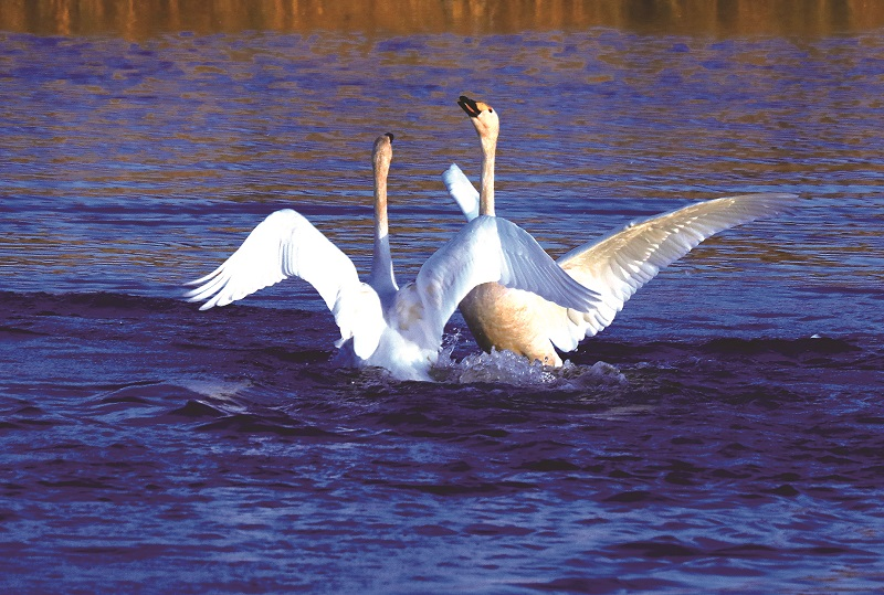 天鹅水中起舞。石嘴山市新闻传媒中心通讯员 陈小组 摄