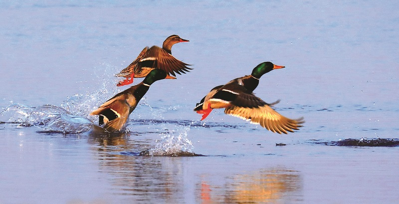 随水汽款款飞行的绿头鸭。石嘴山市新闻传媒中心通讯员 陈小组 摄