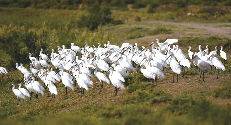 成群的白琵鹭在栖息。石嘴山市新闻传媒中心通讯员 陈小组 摄