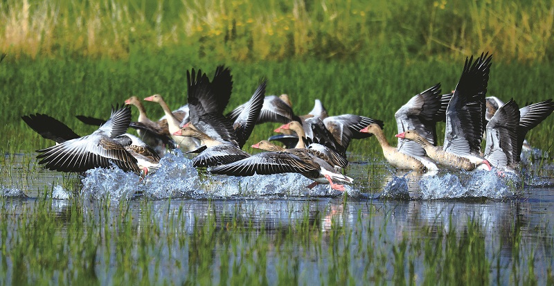 灰雁起飞瞬间。石嘴山市新闻传媒中心通讯员 陈小组 摄
