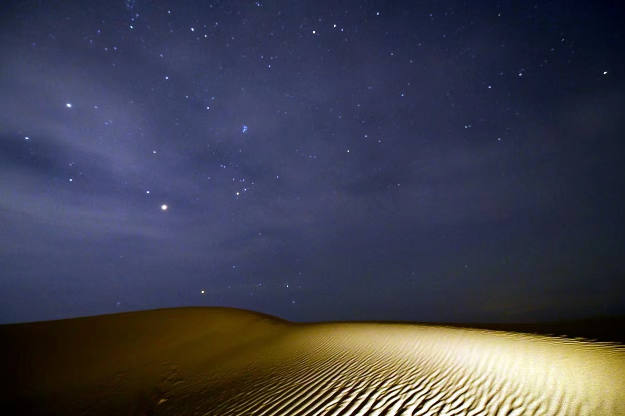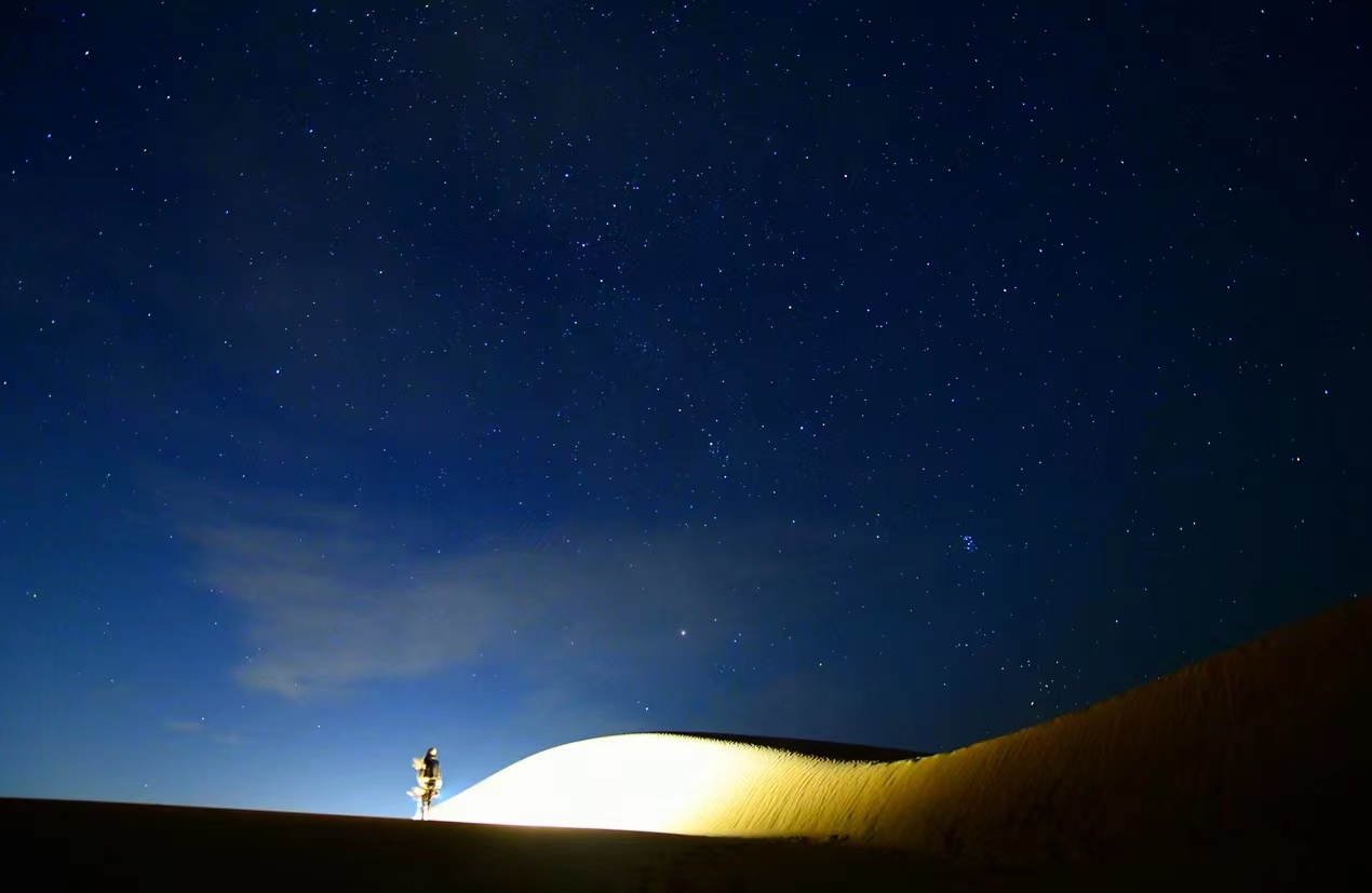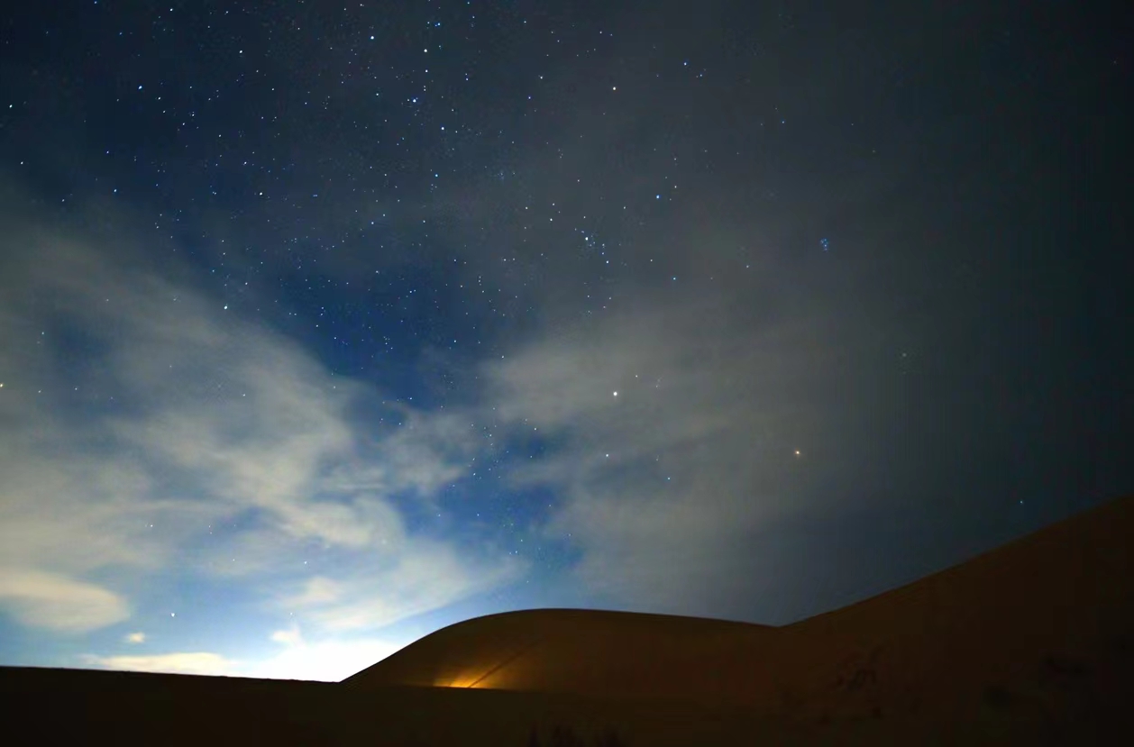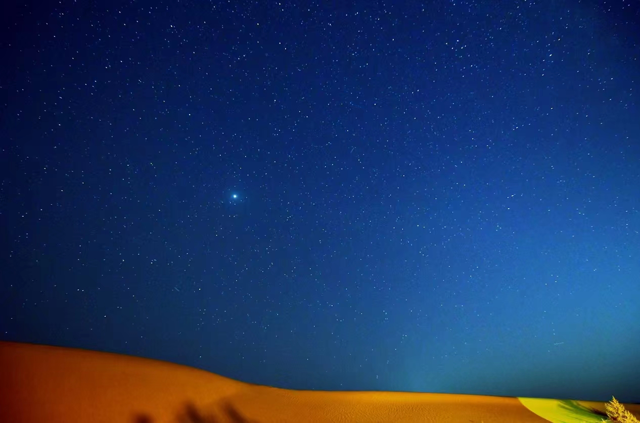 昨夜星辰昨夜风 富贵荣华一场空 !夜观天象 流星瞬移 我们只是在时空的一角 呼吸 转眼无踪!我们在这,此时此地, 远逝的人到了时空的另外一头!隔着多少光年!周六拍摄于平罗河东沙漠!