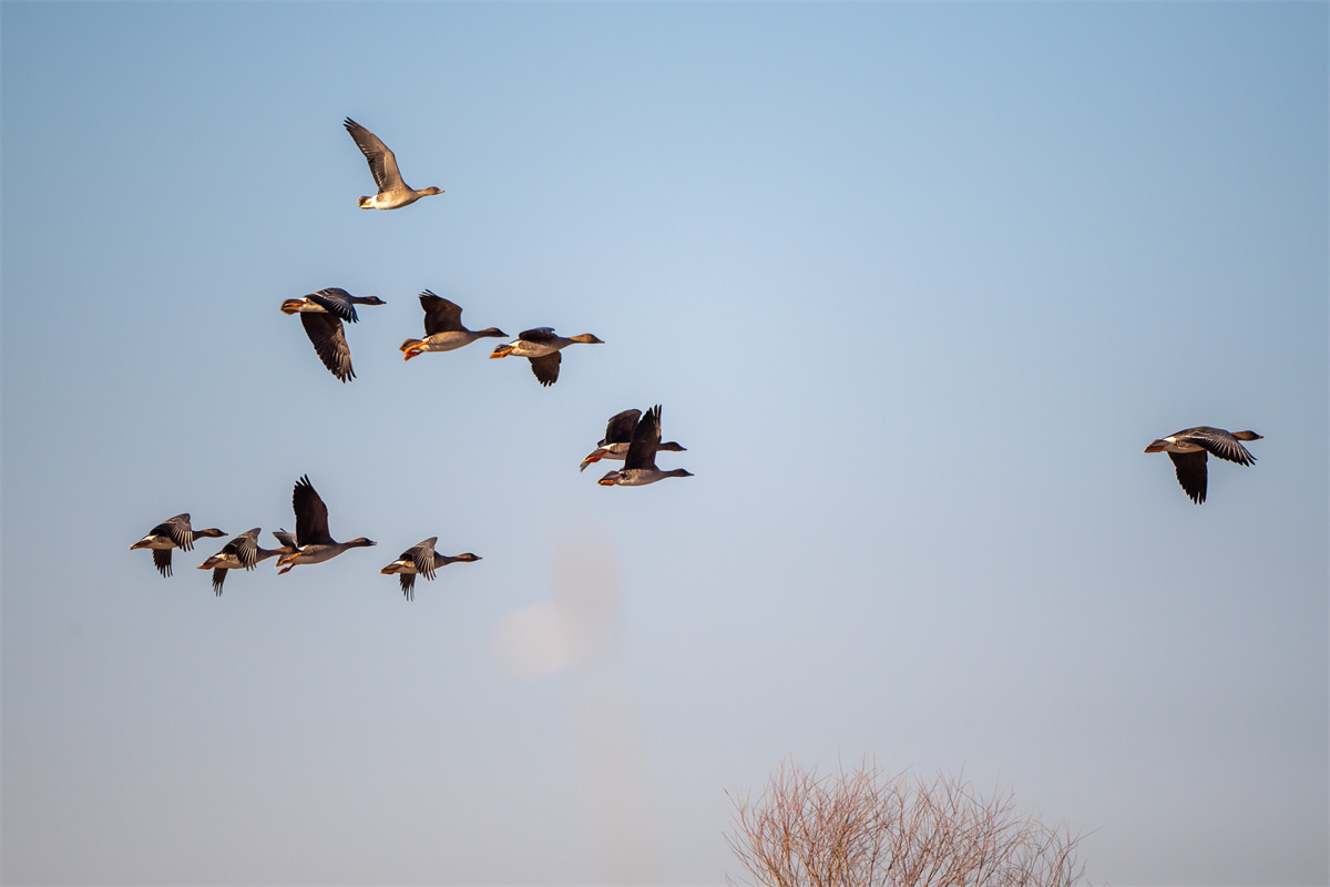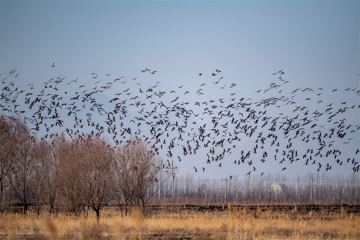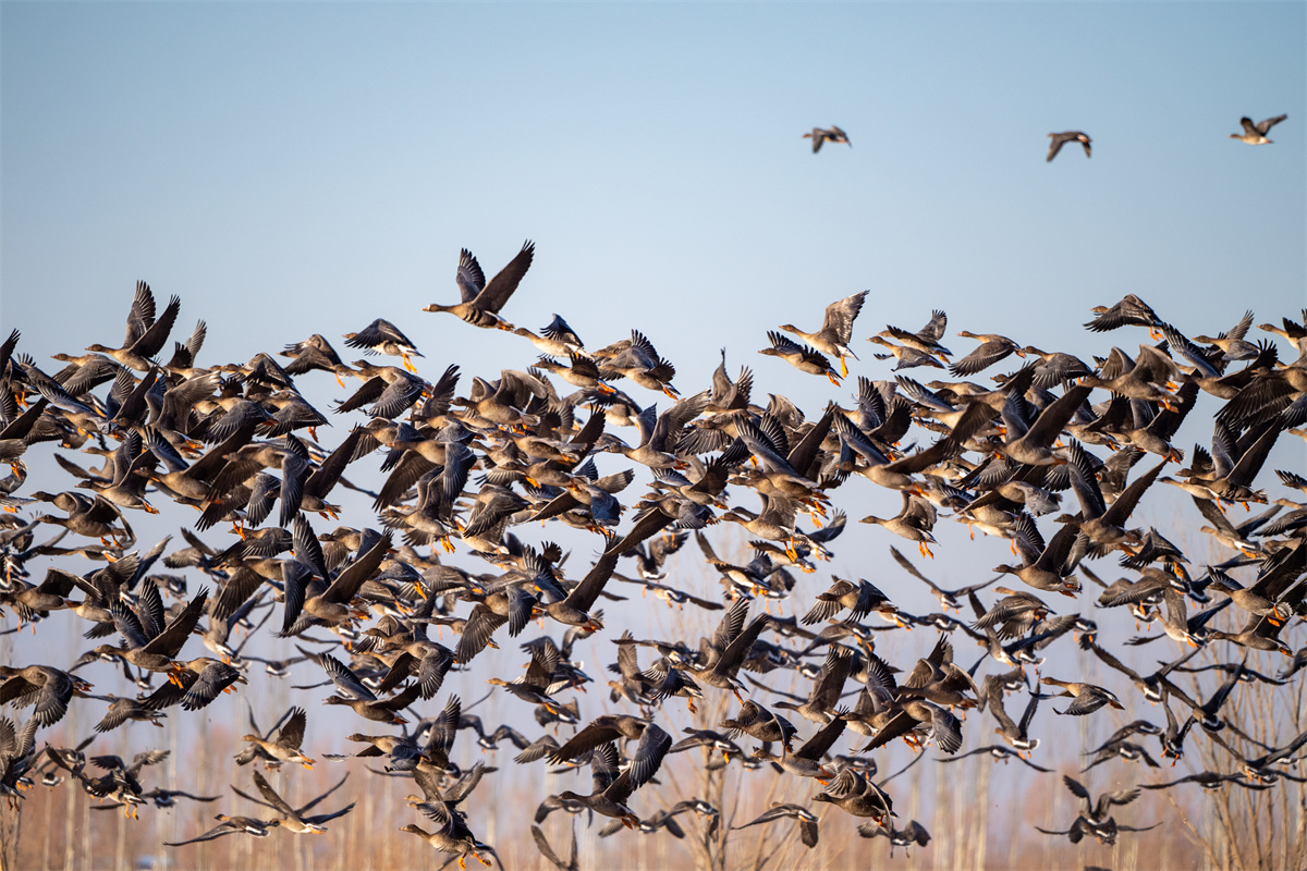 宁夏平罗:数千只大雁停下南飞的旅程就地越冬