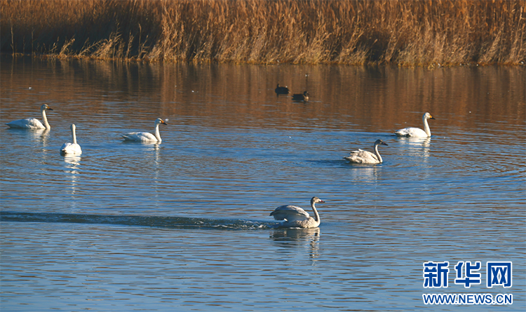 初秋时节,小天鹅在天河湾国家湿地公园休憩。(岳昌鸿 摄)