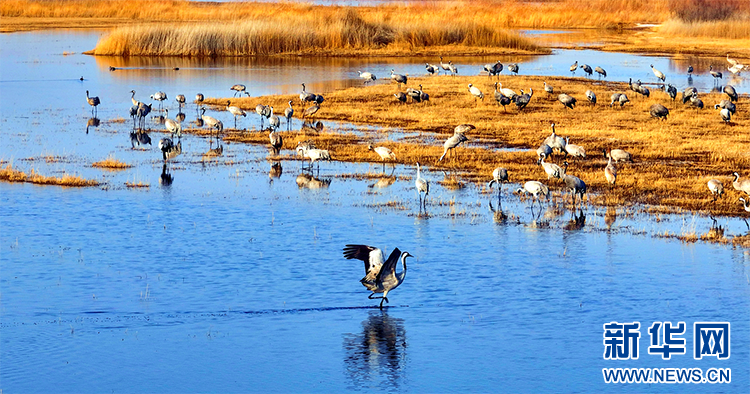 近年来,平罗县持续加大湿地保护与修复力度,深入推进黄河滩区治理,天河湾区域内湿地系统得到有效保护和恢复。湿地内沟渠、湖泊、河流均与黄河相连,丰富的水资源条件和丰茂的植被群落适宜野生鱼类和水鸟栖息、觅食。作为我国西部、东亚和澳大利亚鸟类迁徙路线上的重要停歇栖息地之一,这里每年吸引数万只鸟类到湿地公园栖息,构成了一幅独特的生态画卷。