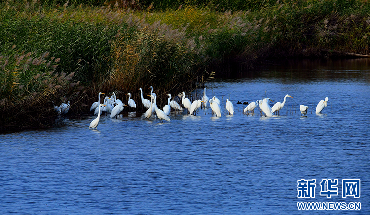 一群白鹭在天河湾国家湿地公园休憩、觅食。(岳昌鸿 摄)