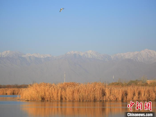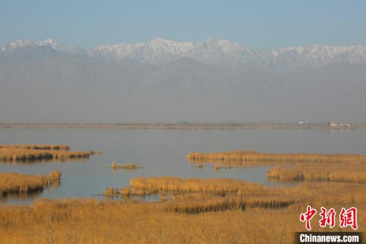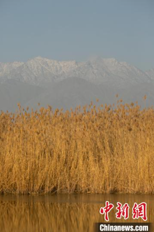 11月30日,位于宁夏石嘴山市境内的沙湖旅游景区,万亩芦苇随风摇曳,与远山、沙漠、湖水交相辉映,构成了一幅冬日美景。