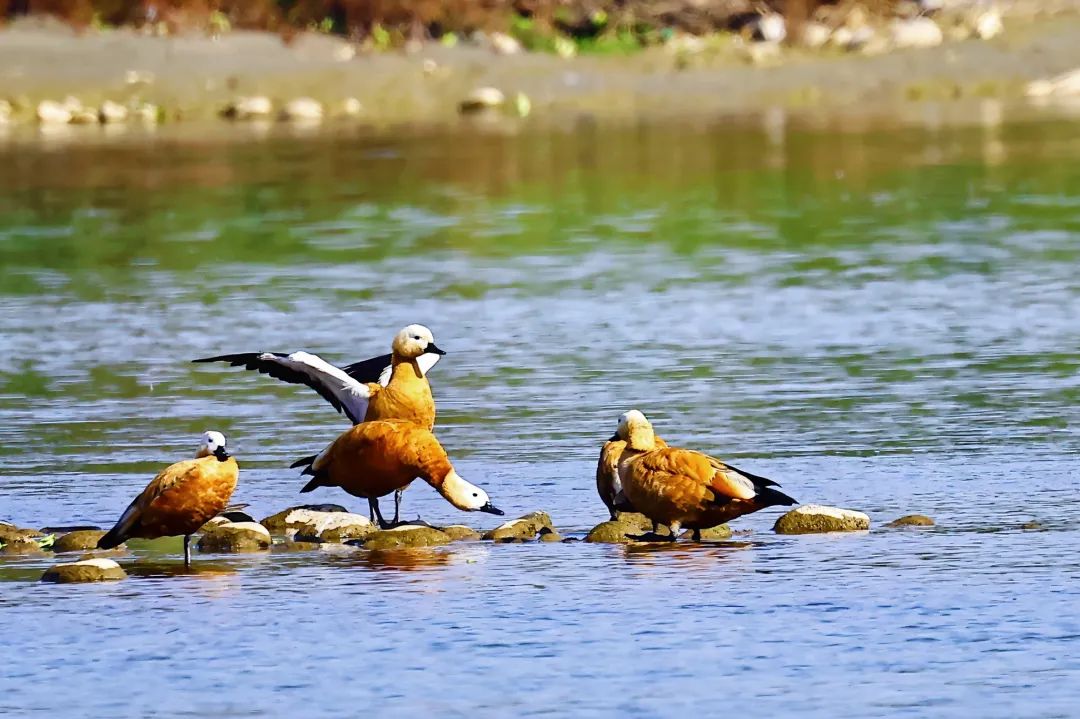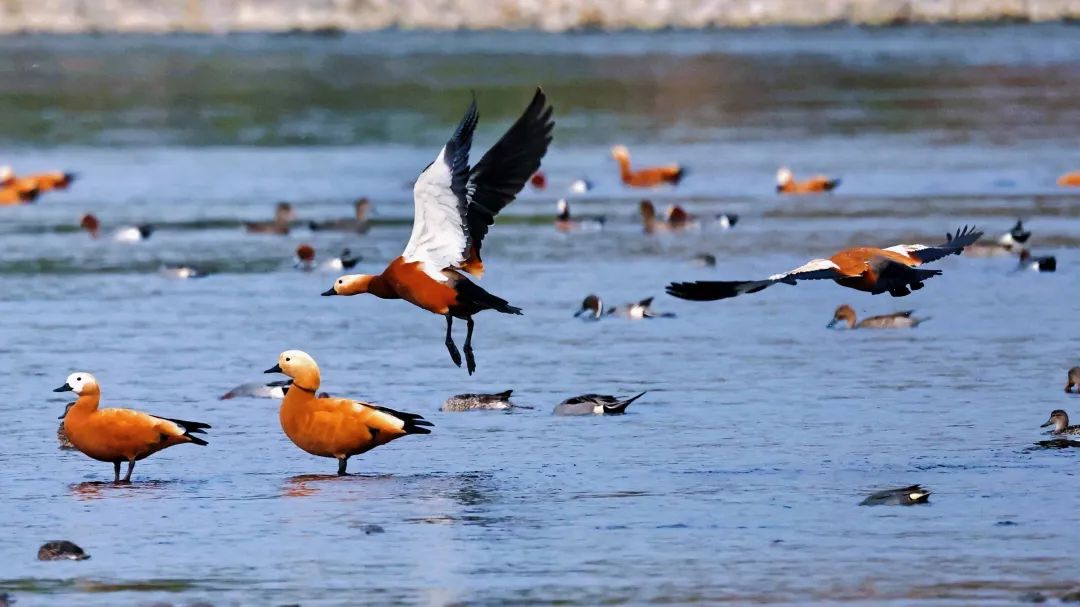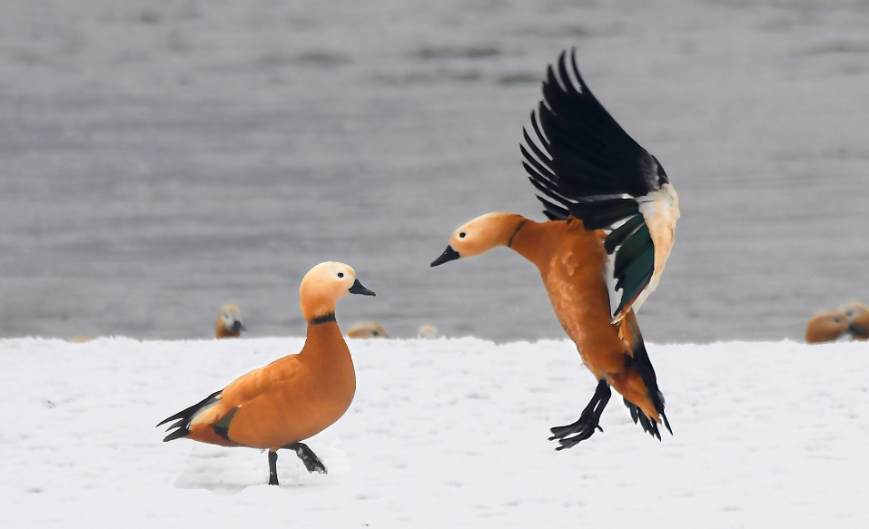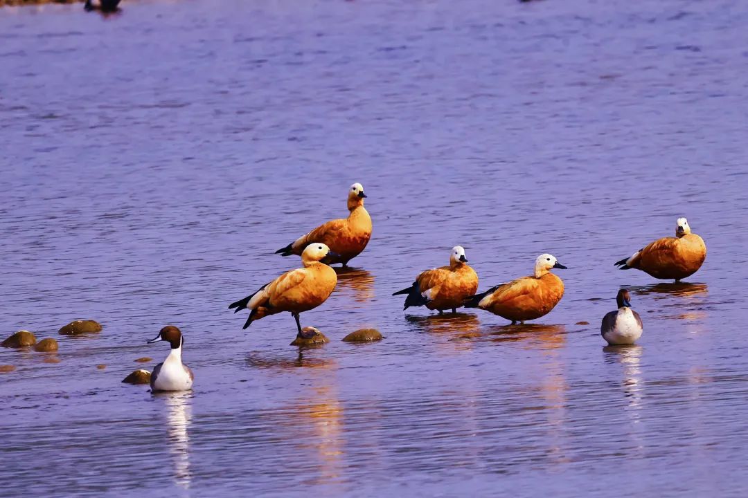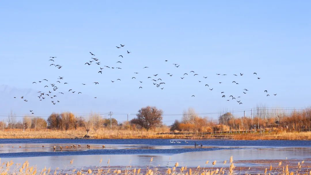 入春以来,一群群、一对对“爱情鸟”在湖东湿地相互追逐、一起觅食,赤麻鸭鲜亮的鸟羽与瑞雪覆盖的湖面、迎风摇曳的环湖芦苇相互交织,良好的生态环境吸引它们将沙湖当做迁徙的“家”。