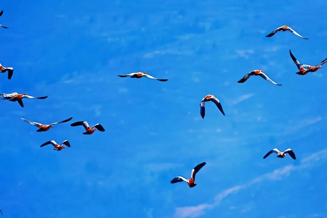赤麻鸭多组成家族或由家族群集成更大的群体迁飞,常常边飞边叫,场面很是壮观,正是因为这样也很容易被误认为是大雁迁徙。