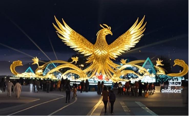 当夜幕降临时,沙湖景区化身国潮文化聚集地,斥资500万元打造的“沙湖国漫灯彩会”盛大开启,百盏灯彩以文化为内核、科技为媒介,勾勒出一幅“东方神话入画来”的奇幻画卷。“火舞惊澜”表演将非遗火壶技艺与水上飞人特技巧妙融合,烈焰在水面翻腾,带来“水火交融”的震撼视觉体验,让千年技艺在新时代焕发出新的生机。