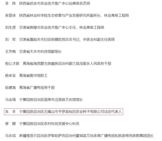 近日,中央宣传部下发通知,公布了2022年全国文化科技卫生“三下乡”活动示范项目、优秀团队、服务标兵名单,平罗县裕田农业种子有限公司法定代表人朱丰同志成功上榜,获评优秀服务标兵。