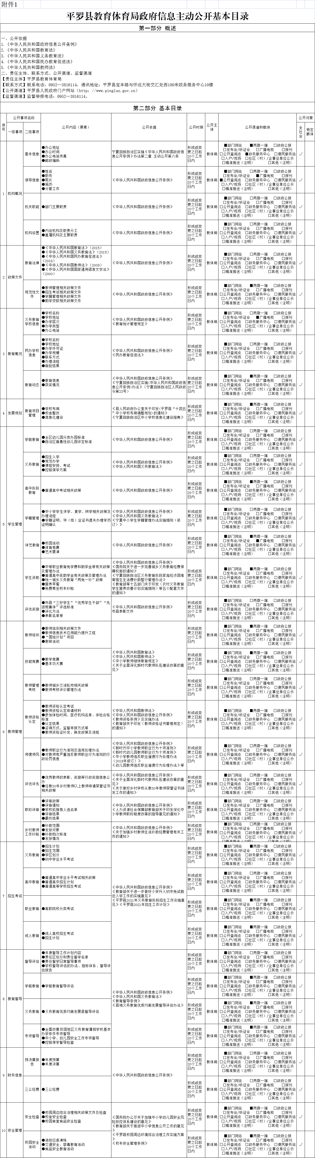 【县级目录-目录更新】平罗县教育体育局政府信息主动公开基本目录