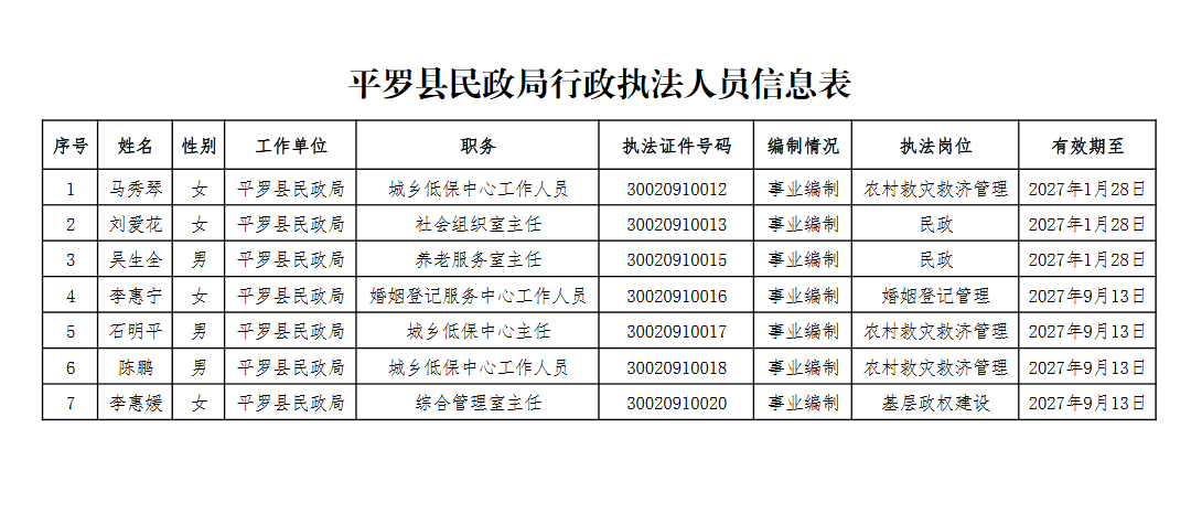 平罗县民政局行政执法人员信息表