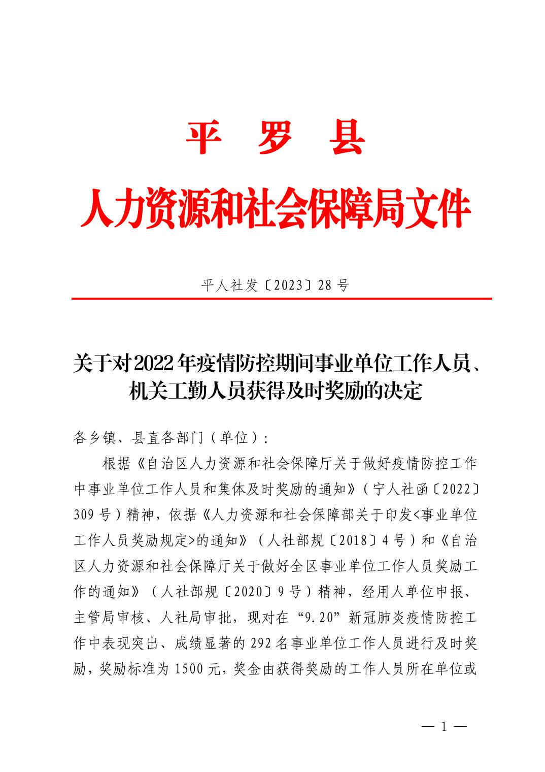 平罗县人力资源和社会保障局印发《关于对2022年疫情防控期间事业单位工作人员、机关工勤人员