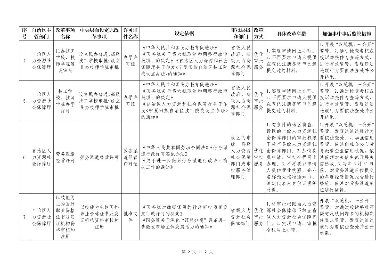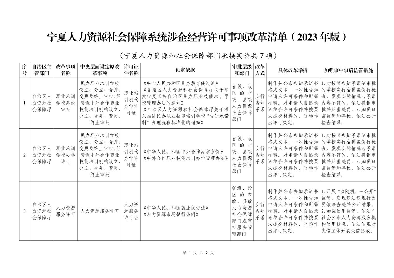原文链接:宁夏人力资源社会保障系统涉企经营许可事项改革清单(2023 年版)