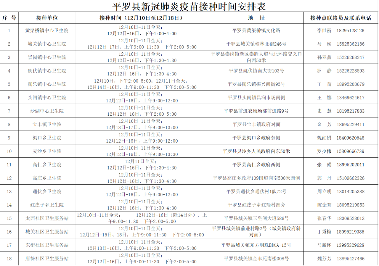 为加快推进新冠疫苗接种,构建全民免疫屏障,12月10日至12月18日平罗县持续开展新冠病毒疫苗第一针、第二针及第三剂次加强针的接种工作,现将有关事项公告如下: