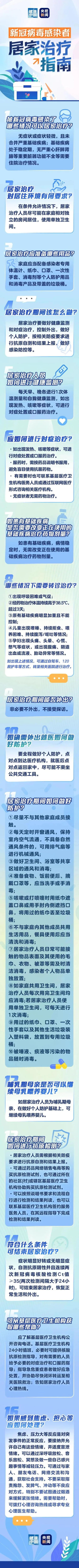 新冠病毒感染者哪些情况可以居家治疗?居家期间如何做好防护?符合什么条件可结束居家治疗?一图看懂《新冠病毒感染者居家治疗指南》↓↓↓