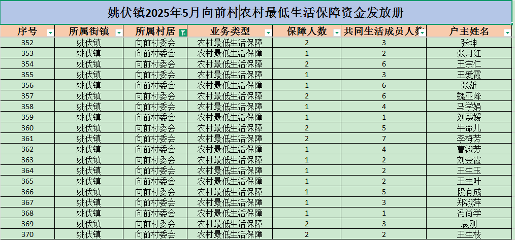 姚伏镇2025年5月向前村农村最低生活保障资金发放册