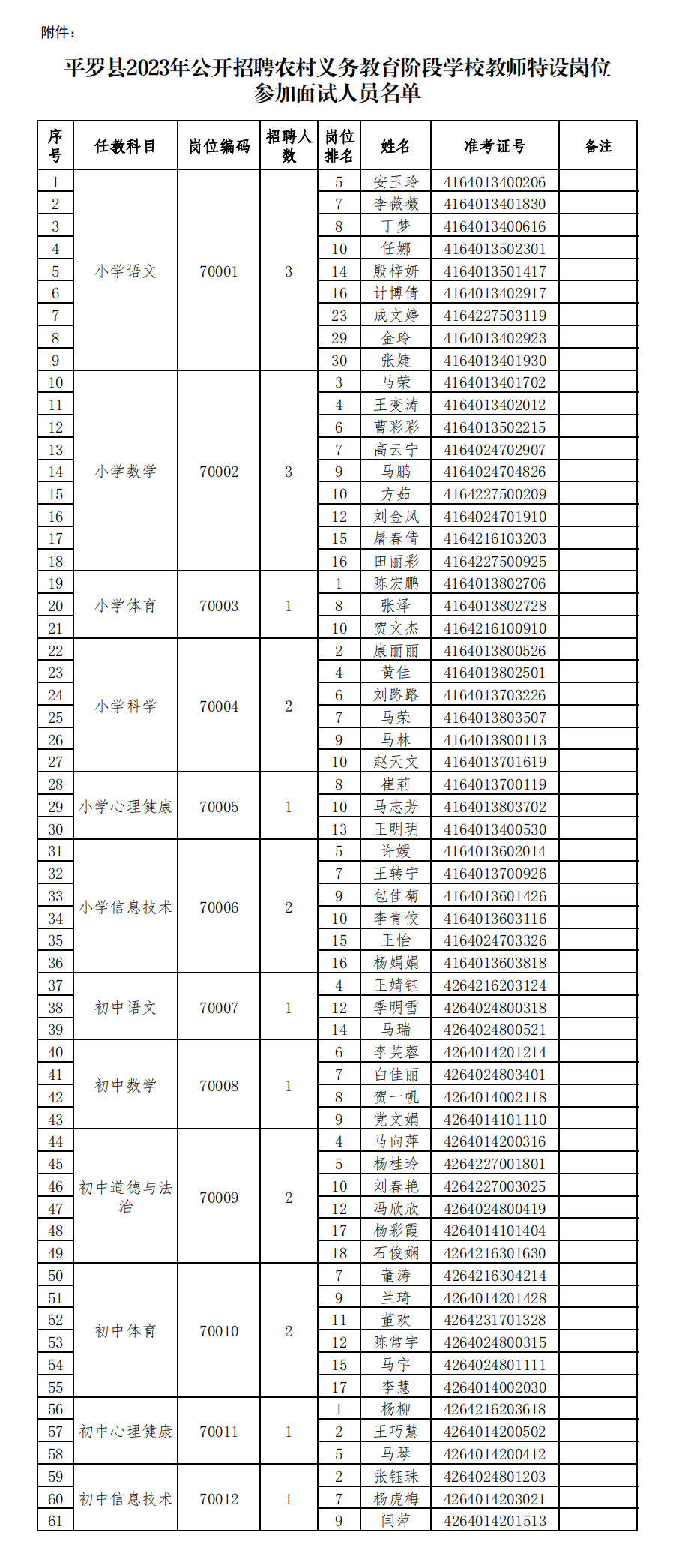 附件:平罗县2023年公开招聘农村义务教育阶段学校教师特设岗位面试人员名单