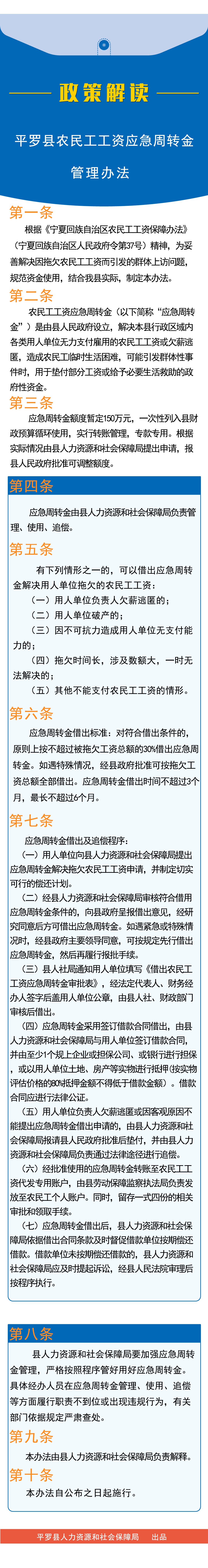 【政策解读】一图读懂 平罗县农民工工资应急周转金管理办法