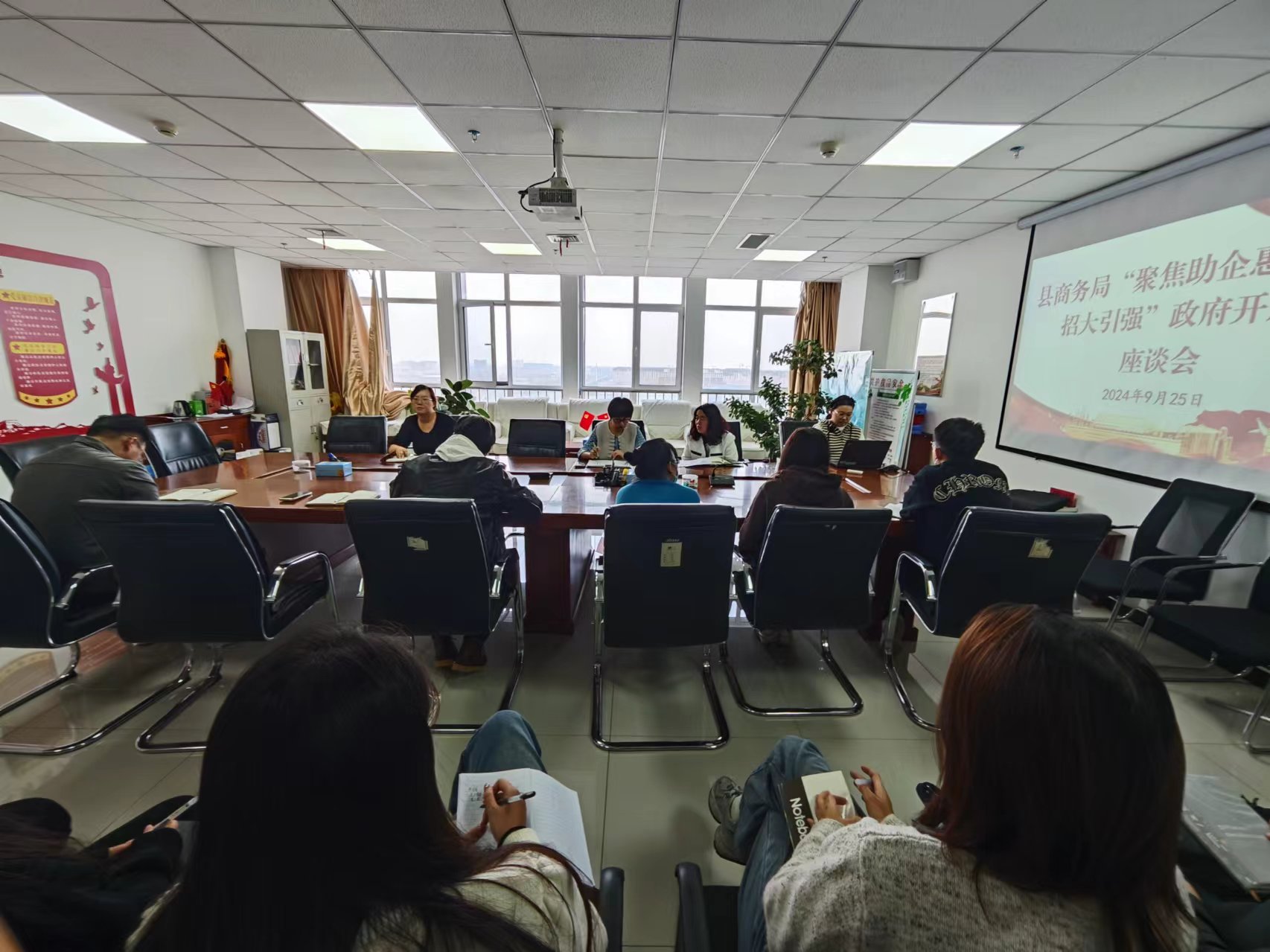 二、现场交流座谈,汇聚智慧力量。参观结束后,组织代表们在会议室开展了座谈交流会,集中观看了招商引资宣传片,商务局相关科室向代表们解读了当前招商引资优惠政策,汇报了今年以来招商引资、促消费等重点工作开展情况,听取群众及企业家的意见建议。并对群众及企业在经商中遇到的实际问题和困难,进行了沟通交流、现场答复。